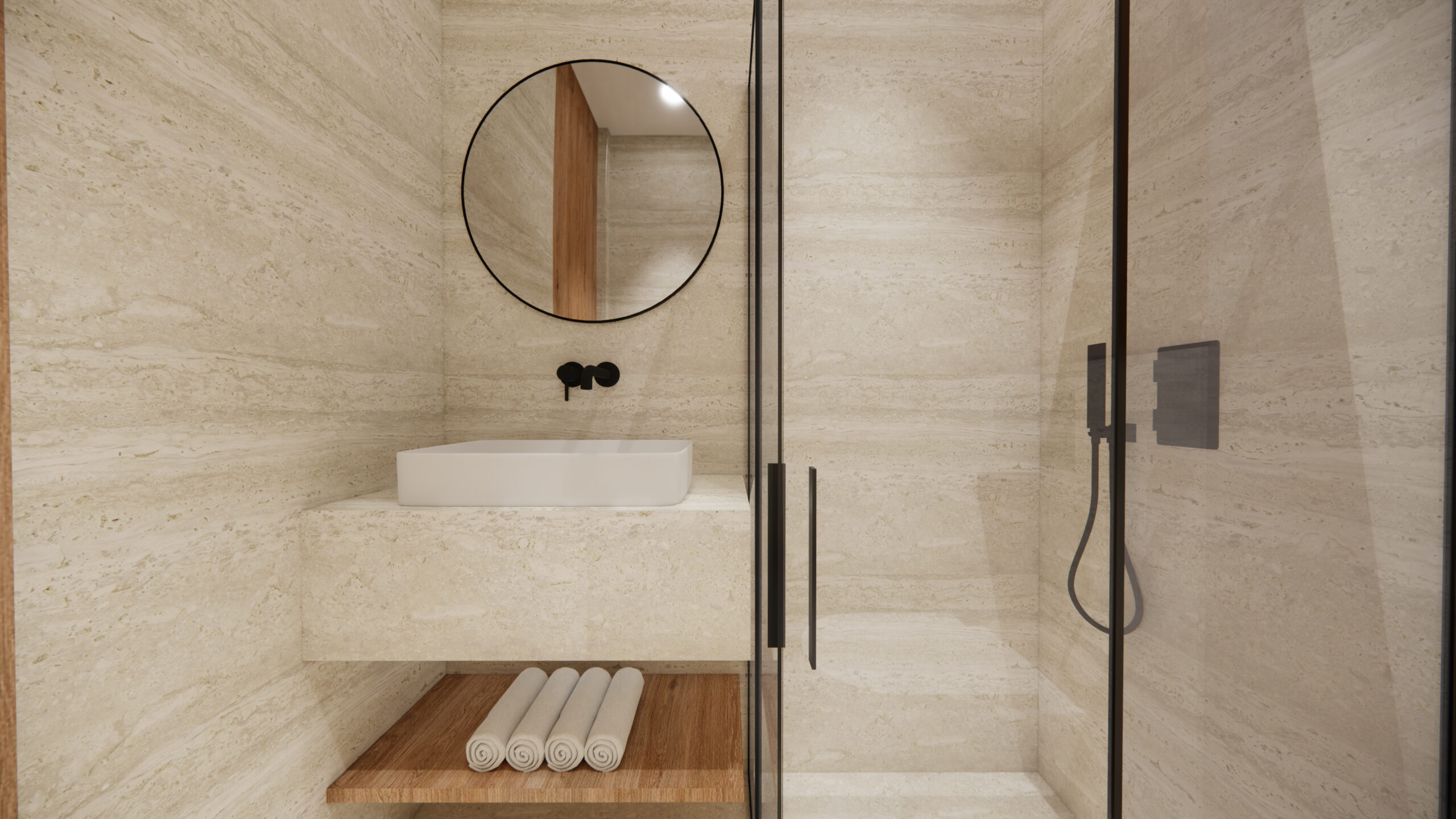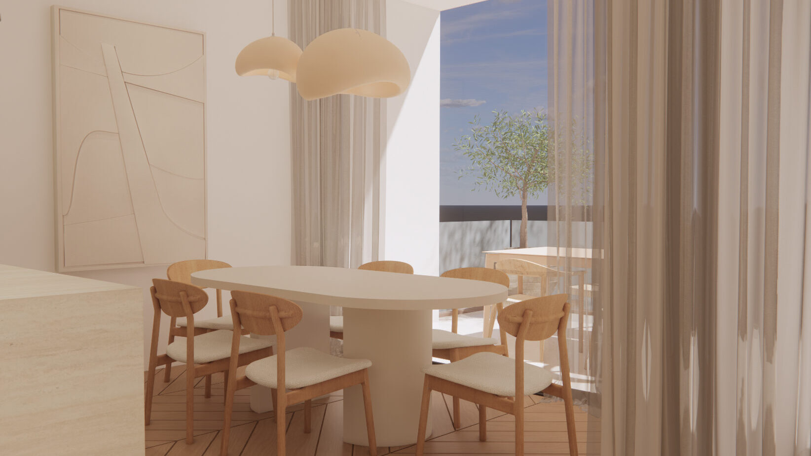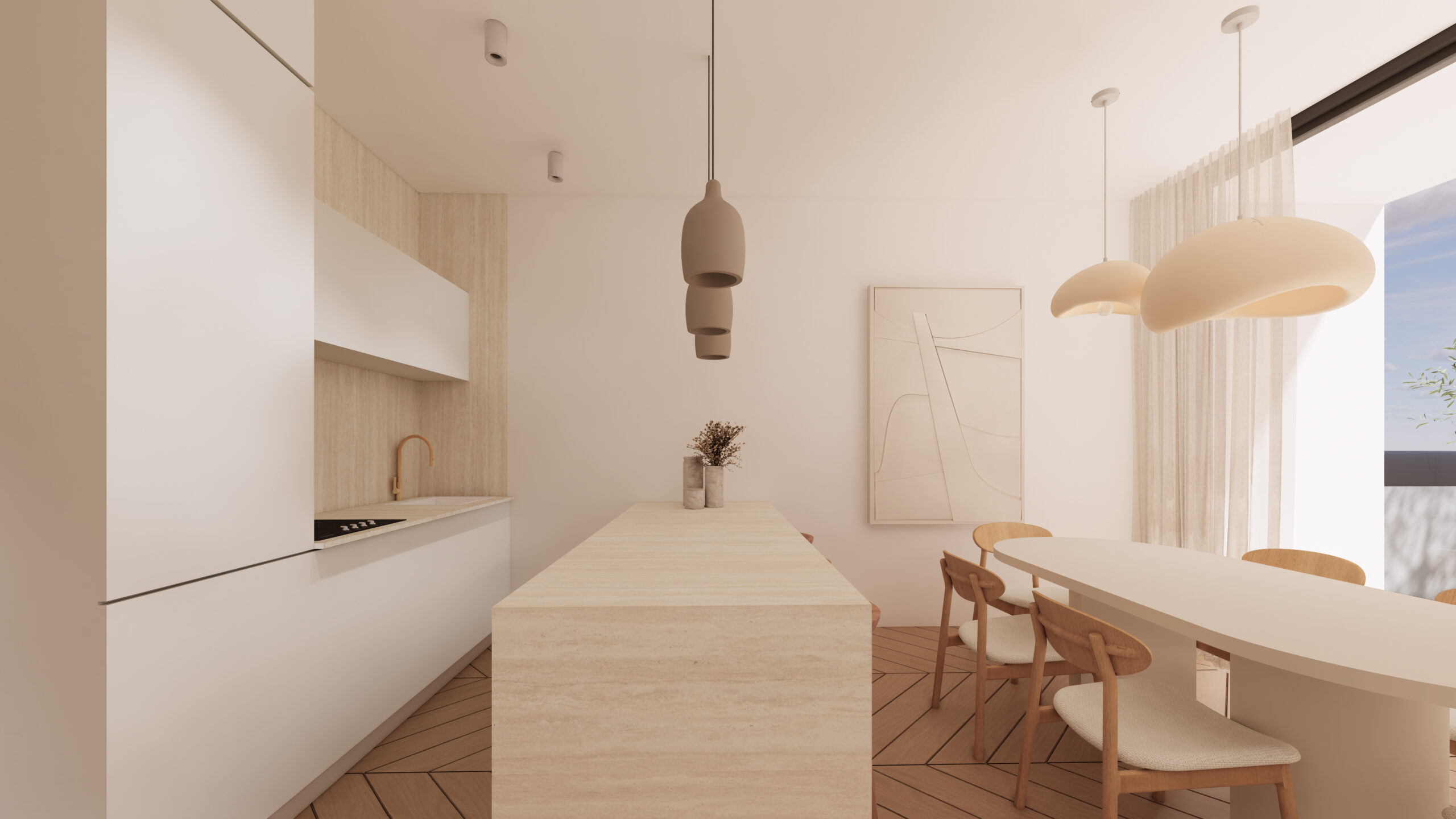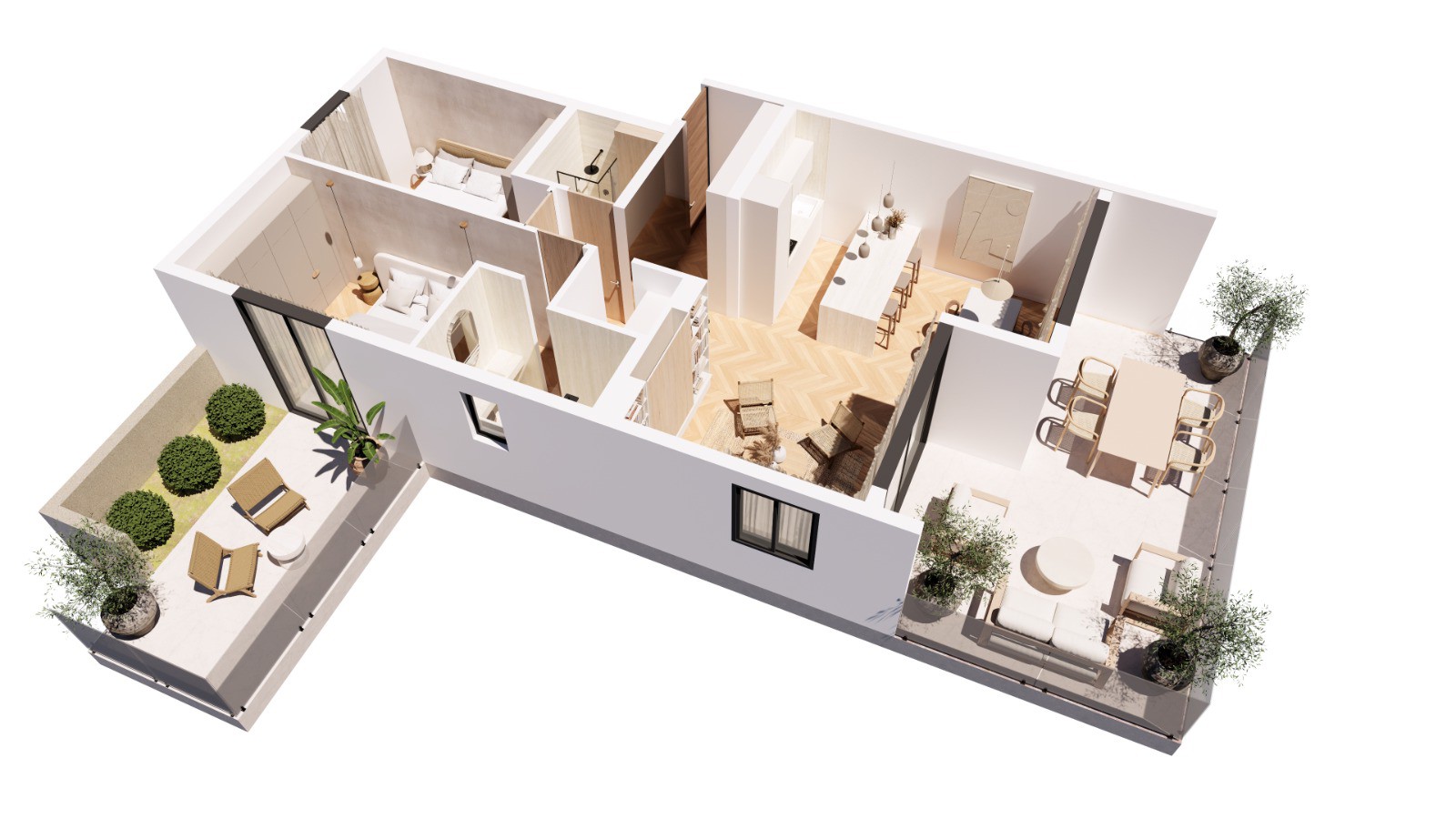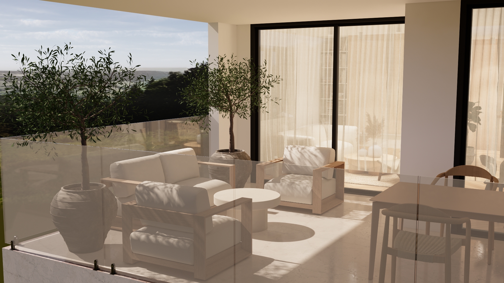 Auf das Meer ausgerichtet, eröffnet das Apartment aus jedem Winkel des Wohn- und Essbereichs einen freien Blick auf die Weite des Meeres. Die drei (!) Terrassen schaffen vielfältige Rückzugsmöglichkeiten und laden dazu ein, bei schönem Wetter entspannt im Freien zu verweilen.